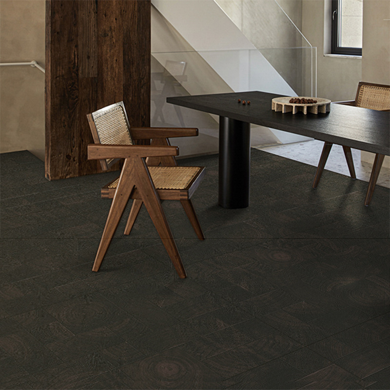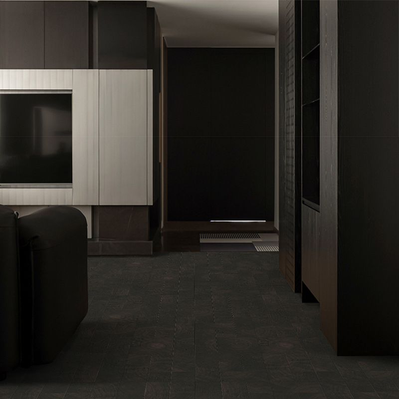 Ebony wood-look vintage floor tiles for bedrooms and balconies, featuring wood grain patterns.